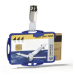 Dual Security Pass Holder with rotating clip fastener. Securely holds two ID cards in portrait or landscape format. Can be combined with chains, textile necklaces and badge reels.
